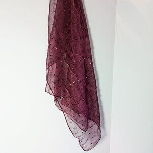 St. John Vintage 90's Burgundy Sheer Silk Rectangular Scarf Sparkly Glitter