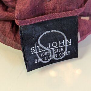 Don't miss out on this burgundy rectangular vintage silk scarf by St. John.