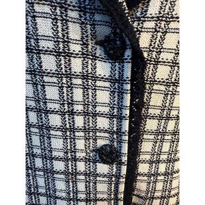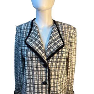 St. John Vintage Black & White Plaid Tweed Jacket With Contrast Trim Size M EUC