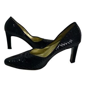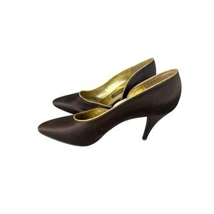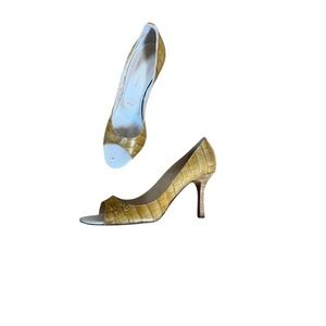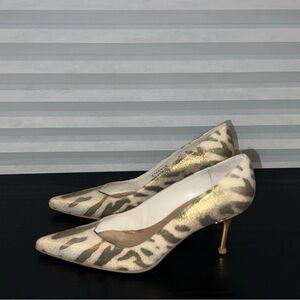 Gently loved in excellent preowned condition. Size 7.5. Worn twice. Leather. Includes 2 dust bags (1 for each shoe). These are a work of art. Approx 4” heel.
