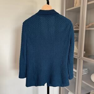 ST. JOHN WAFFLE TEXTURED KNIT WOOL BLEND TEAL SWEATER BLAZER
