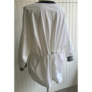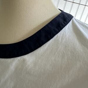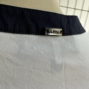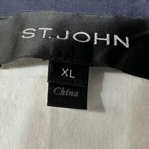 St. John White Navy Stretch Cinched Waist Button Up Size XL