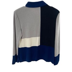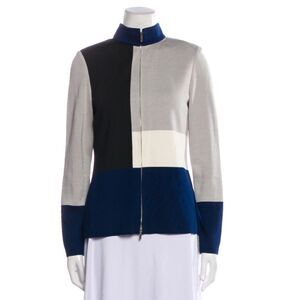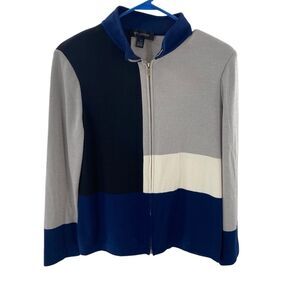 St. John Womens 10 Full Zip Light Jacket Neutral Colorblock Gray Blue Wool Blend