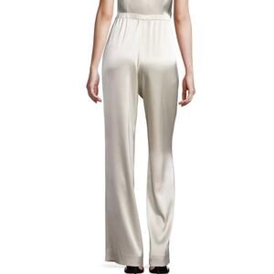 St. John womens 10 platinum satin pants wide leg pull on designer trousers luxury elegant evening wear formal chic polished high end resort wear metallic silver fluid drape sophisticated couture St. John Collection timeless style premium fashion