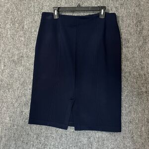 Preowned St John women's size 12 pencil skirt with a structured straight silhouette and soft stretch feel. Made in the USA with St John's classic quality knit construction, offering a comfortable midweight fabric and clean business-formal profile. Ideal for office wear, career outfits, or elevated minimalist wardrobes. Good used condition with normal light wear and no major flaws noted.