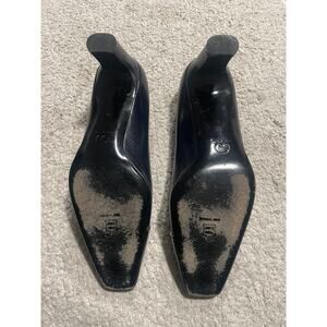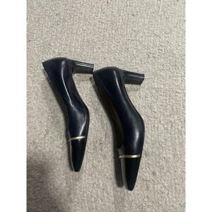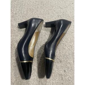 St. John Heels Women's Size 9 Gold Trim Spectator Pumps Leather Blue Black Made in Italy Block Heel B 9 S 445 14055