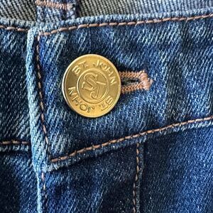 St. John Womens Bootcut Golden Embellished Rhinestone Heart Pocket Denim Jeans