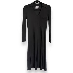 St. John Womens Dress Size XS Knit Shirt Collar Midi Black Pocket Slip