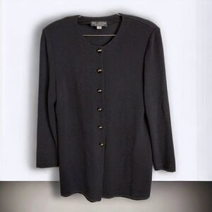 St John Womens Jacket Sz 12 Black Santana Knit Long Classic Vtg Collection