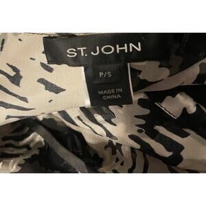St. John Women's P/S Black White Silk Textured Abstract Drawstring Blouse EUC