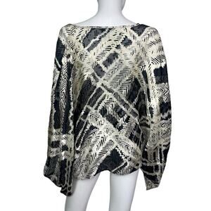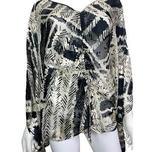 St. John Womens P/S Black White Silk Textured Poncho Open Drawstring Blouse EUC
