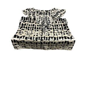 St. John Womens Ruffled Cap Sleeve Blouse Black & White Abstract Print Size 8 Si