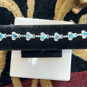 St. John Women’s SJ Sea Turtle Bracelet Chain Link Clasp Turtle ABALONE …
