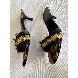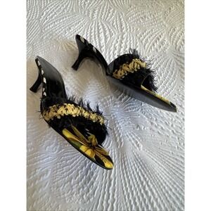 St John Women's Sandals Sz 6.5 B Italian Made, Yellow Floral Heeled Evening