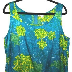 St. John silk tank top size large. 95% silk and 5% spandex sleeveless blouse. Super soft and silky in a vibrant aqua blue with lime green hydrangeas. Back zip closure and a round neckline. Retails for $400. Measurements: length- 23 inches and Chest (underarm to underarm)- 20 inches
