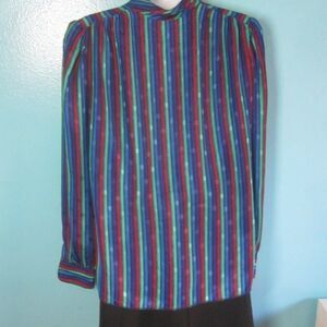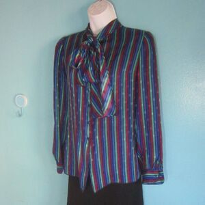 St. John Womens Size 6 VINTAGE Polyester Striped Button Up Blouse w/Bow 40" Bust
