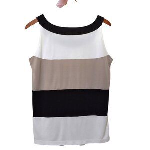 St. John Womens Sleeveless Colorblock Knit Top Bateau Neck Neutral - Size 10