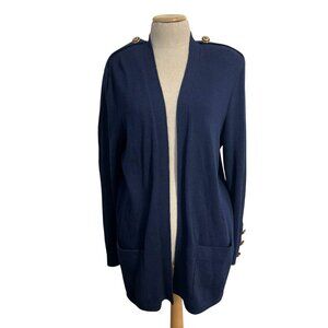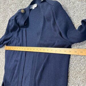 St. John Womens Sz Basics Navy Open Front Cardigan Sweater W/ Gold Button