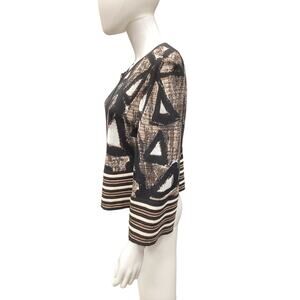 St. John Women’s Zip Up Cardigan SZ 12 Fine Knit Shoulder Pads Brown Beige Black