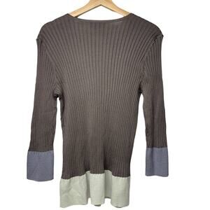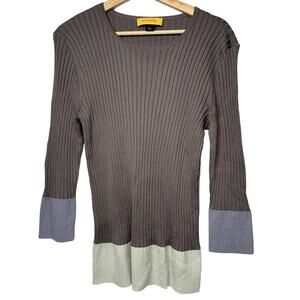 St. John Womens size Large Brown Wool Blend Ribbed Color Block Sweater Pullover
