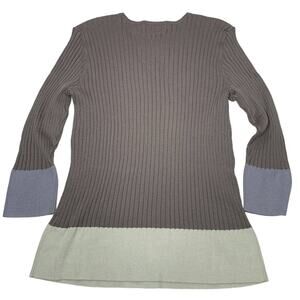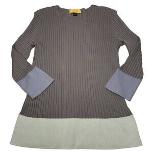 St. John Womens size Large Brown, Purple and Gray Color Block in a Ribbed Wool Rayon Blend Pullover Sweater.