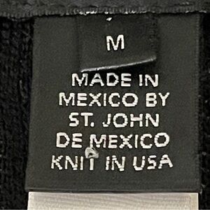 Fabric: Wool Blend (tagged “Knit in USA” / “Made in Mexico by St. John”)