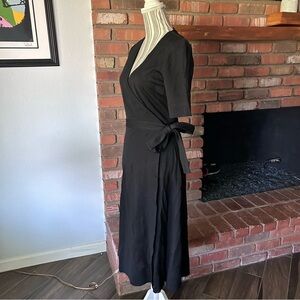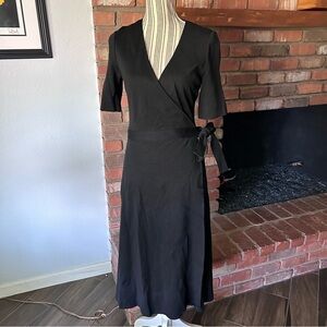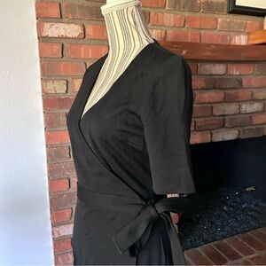 St. John Wool Blend Wrap Midi Dress in Black Sz 4