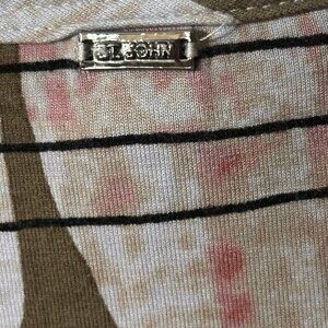 St John Yellow Label Short Sleeve Faux Wrap Stretch Pullover Top Sz M