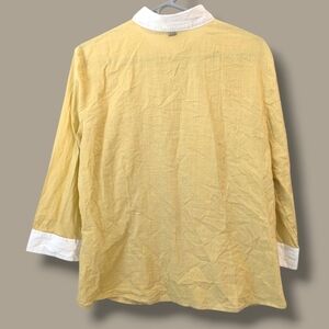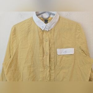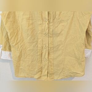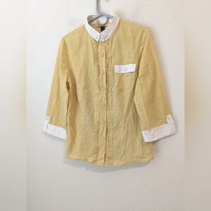 St. John Yellow Sheer Cotton Quarter Sleeve Pintuck Button-Up Shirt Designer.