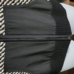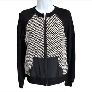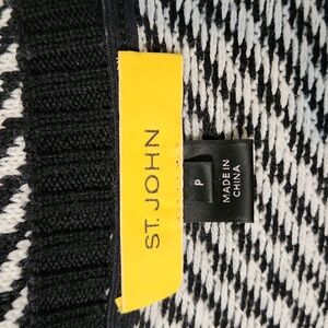 St John cardigan with a zip front and gold hardware. It features front kangaroo-style pockets.