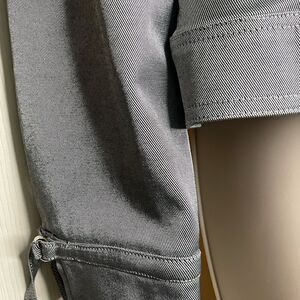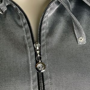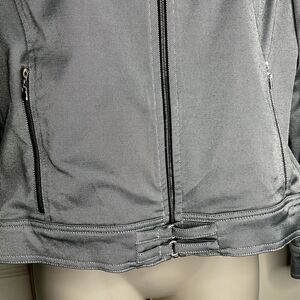 St John zip front jacket, silver, belt details at waist and collar. Excellent condition