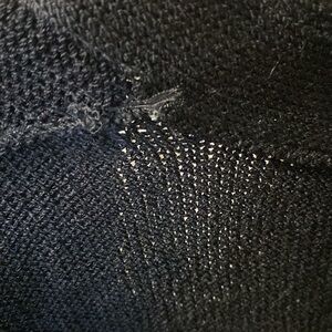 This black, long cardigan by St John is beautiful, sleek and has pockets with beautiful buttons, and is dry clean only.