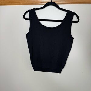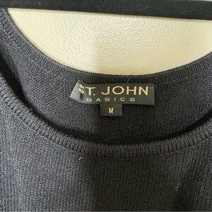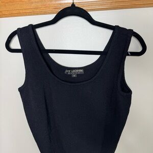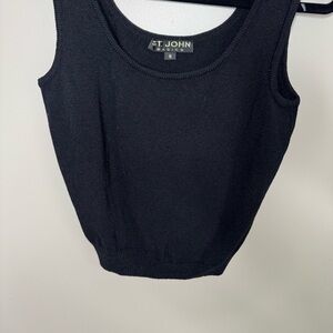 This sleek black tank top from St. John features a fitted design that accentuates your silhouette. With its wide shoulder straps and scoop neckline, it offers a stylish and comfortable fit. The top's stretchy material ensures ease of movement, making it a versatile addition to your wardrobe.