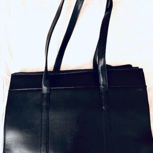 St. John Black textured tote bag with side pocket envelopes. Bottom is 15" long x 4" deep. Strap purse above purse line is 11". On sale for 20% off until April 19th.