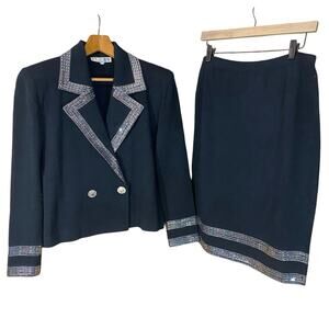 Keywords: vintage St. John suit, Santana knit, embellished skirt suit, holiday party outfit, St. John by Marie Gray, 90s designer suit, luxury knitwear