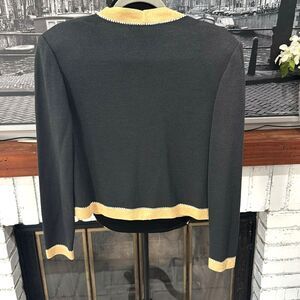 St. John by Marie Gray sweater blazer Gold Trim Silver Black Long Sleeve Medium