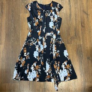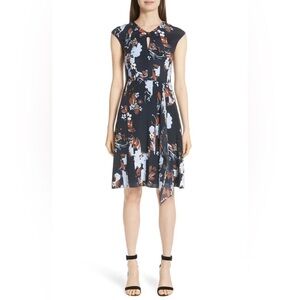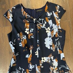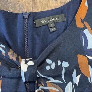 St John cap sleeve painted floral print dress in navy multi SZ 6