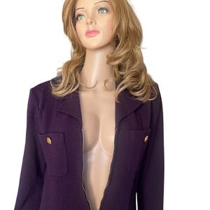 St. John collection PURPLE Dress Gown Gold Buttons Santana Knit Long Sleeve 4