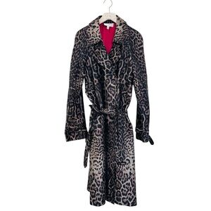 Stylish leopard print trench coat for women. Perfect for adding a bold statement to your wardrobe.