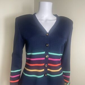 St. John knit Navy Cardigan sweater jacket with Multicolor Stripes