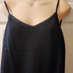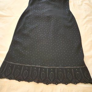 Beautiful black knit evening dress, size 8, ecxellent condition never worn, tags on. Pailettes thru out with a lace like finish at the bottom. Lenght from shoulder 38