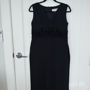 Beautiful Black St. John long gown. Trapunto design at the waist front and back. Simple and stunning! Zips up the back. Gorgeous! Altered Size 8.