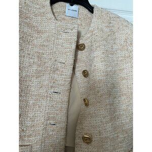 Looks brand new! GORGEOUS cream and pink tweed cropped jacket. No stains, non-smoking home. Perfect to dress up or down. Retail $1000