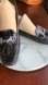 Leather lining tassels on gun metal embellishment