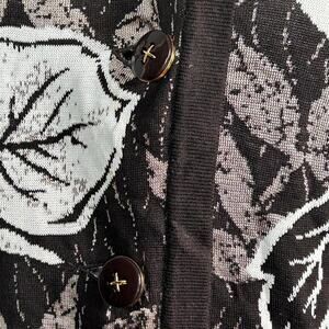 St. John sweater cardigan size 12 floral buttons wool brown roll tab collar