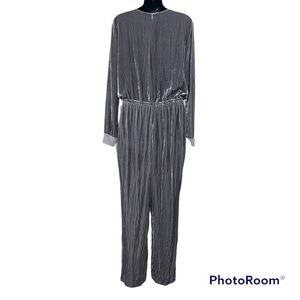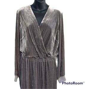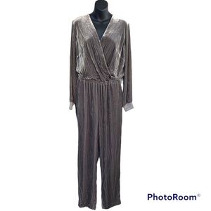 St John taupe crushed velvet silk/rayon jumpsuit Sz 6