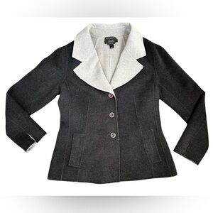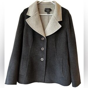 Stunning St John wool cashmere gray jacket. Dark gray outer and light gray inner. Super soft, very high quality craftsmanship. Very luxurious jacket with buttons, double breasted. Hand sewn. High end brand.