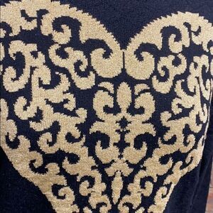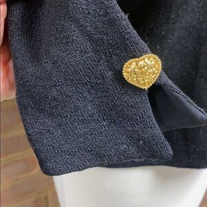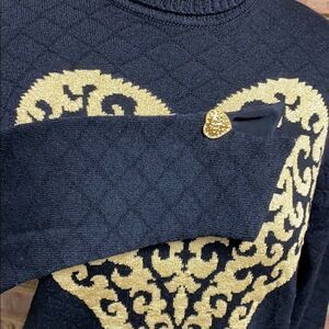 St. John Black Turtleneck Heart Knit Sweater Size P