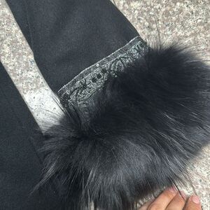 Cashmere and fox fur trim. Worn once. Gorgeous quality and materials. Sequins detailing.