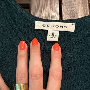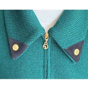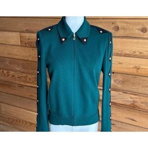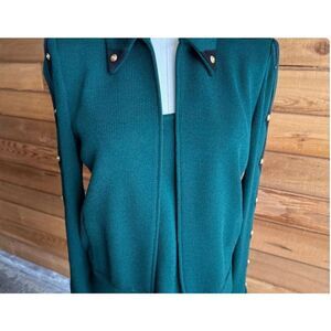 Spectacular St. John Collection Knit Jacket and Matching Tank. Forest Green with Black and Gold Detail. Shoulder Pads.